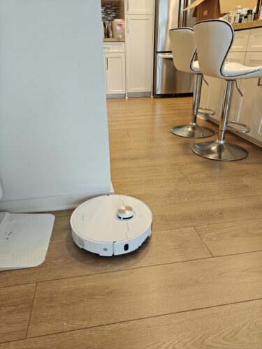 I am really enjoying this robot vacuum. It has become a daily helper around the house. When I come home after a long day, instead of stressing about the mess, I find my floors spotless. The suction power is really good for a robot vacuum, and the side brush works great at reaching those tricky corners where dust likes to hide, such as around my couch, dining room table, and walls. The mop also works great at doing a deeper clean, cleaning up the areas where my younger boys like to leave their sticky messes.