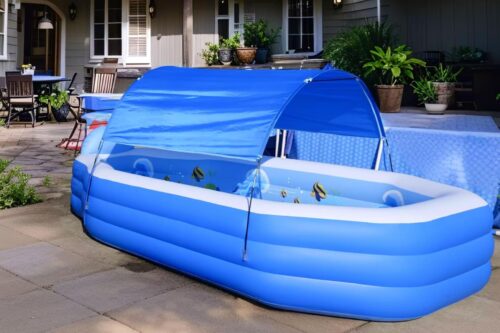 This inflatable pool is a great way to beat the summer heat. It is large enough for adults and kids alike and will comfortably fit several people for fun pool days right in the backyard. The canopy is a feature that I hadn't seen in other pools and provides much-needed shade and protection from the harsh summer sun.