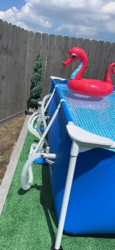 Is it the prettiest? No 😂 would we love the look of a stock tank pool? Yes! But those aren’t practical if your kids actually want to swim. This can also be taken down after summer and (hopefully!) put back up the next year. If it doesn’t last through the summer, it’s cheap enough to replace. Overall, this has been the best pool for our family, and I hope you enjoy it as much as we have!