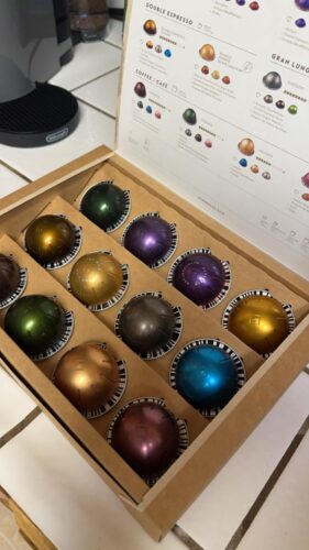 Comes with a Nespresso sampler which is very helpful to figure out which coffees are preferred over others. I have a “regular” espresso machine which is a bit more work that I still use as well. This Vertuo machine is so convenient and makes a nice cup of espresso or coffee quickly. Really glad I bought it and hope to enjoy it for the long term.