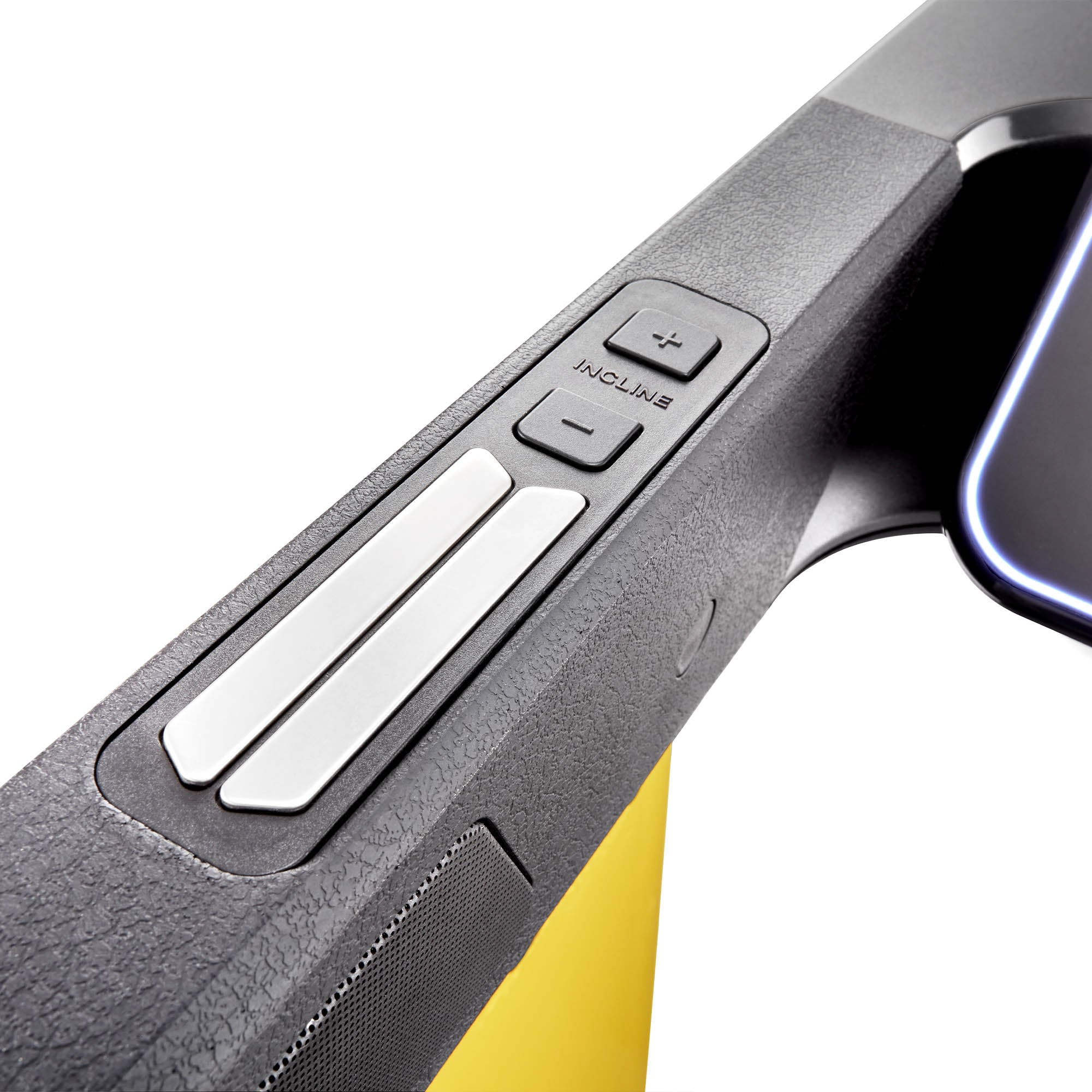 The Reebok FR20z Floatride Treadmill is a top running machine that combines the comfort of home training with an outdoor running experience. Powered by a reliable eco-Kinetic 2.25 horsepower motor, the FR20z offers a maximum speed of 18kph (11mph), 15 levels of power incline and 24 onboard workouts. A large running area of 46cm (18”) by 140cm (55”) provides comfort during your runs while the finely tuned Floatride+ cushioning system significantly reduces the impact on your joints. Thanks to the Kinomap (60-day Free Kinomap trial included) and Zwift apps compatibility, you can enjoy an immersive online running experience and join a global community of connected runners. This space-friendly treadmill from Reebok delivers clear feedback and enables progress tracking.