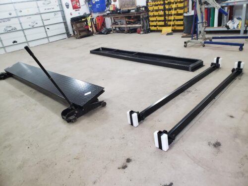 - Complete kit – Includes caster kit, aluminum ramps, jack tray, and 3 drip trays.