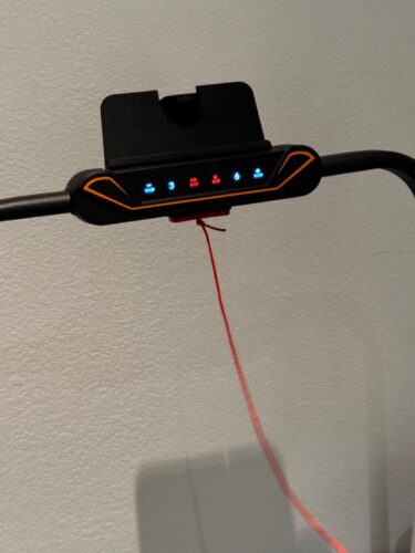There is a little shelf to add to the handle to hold your phone, but mine seemed to be missing the screws to attach it. I don't really need it so that was not an issue. I could always find some. The buttons to start, stop, increase, and decrease speed are on the handle, easy to access. The distance, calories, time, speed are displayed on the pad in front of your feet. Looking down at these things is hard on my neck, but I don't look down all the time. Having these items on the handle like some other WPs have would have been nice. The cord is very short so you have to place the WP right beside the plug. I'm not sure you can use an extension cord. It is not mentioned in the manual.